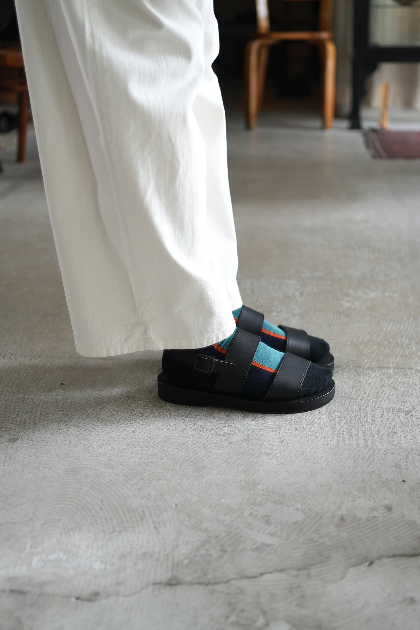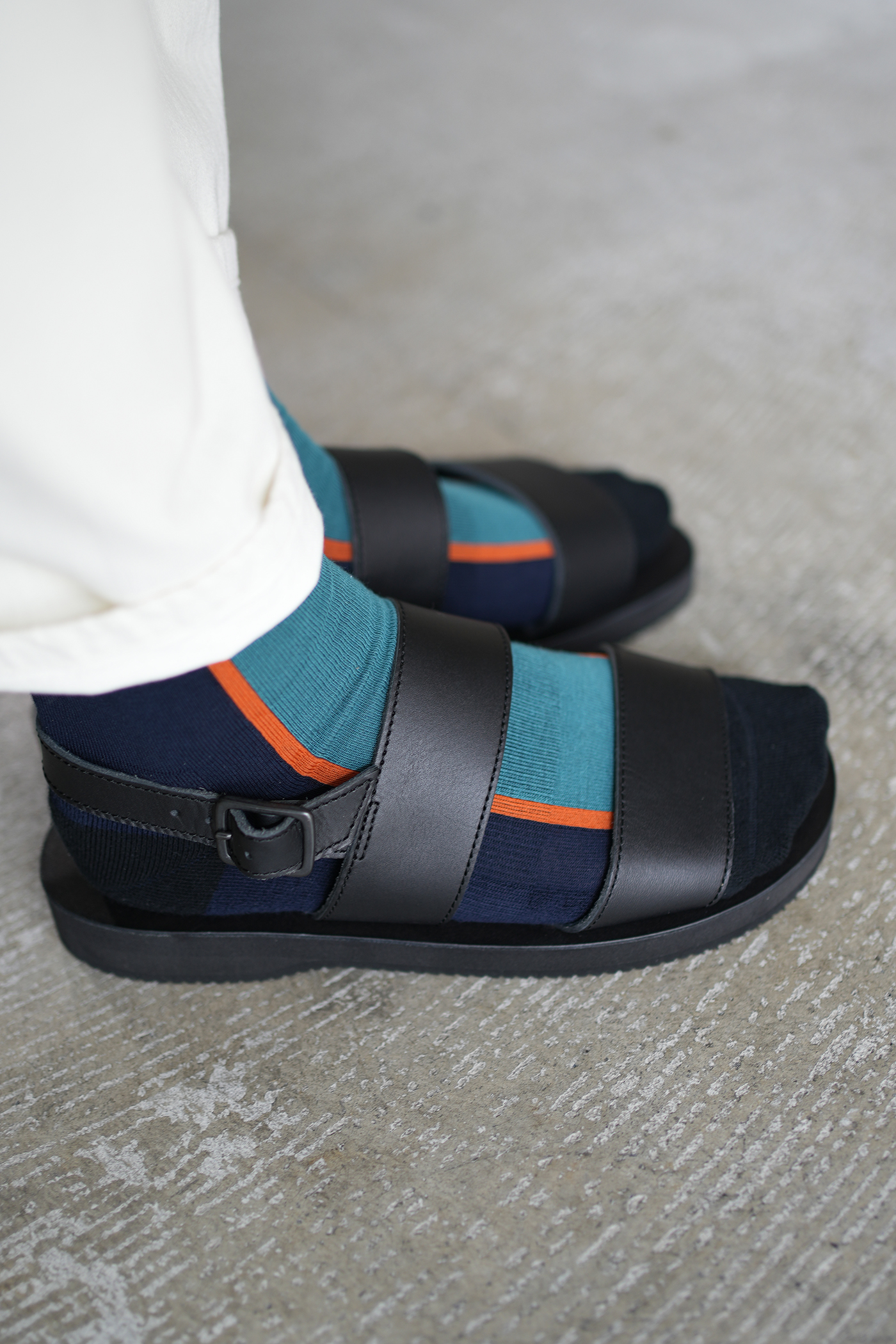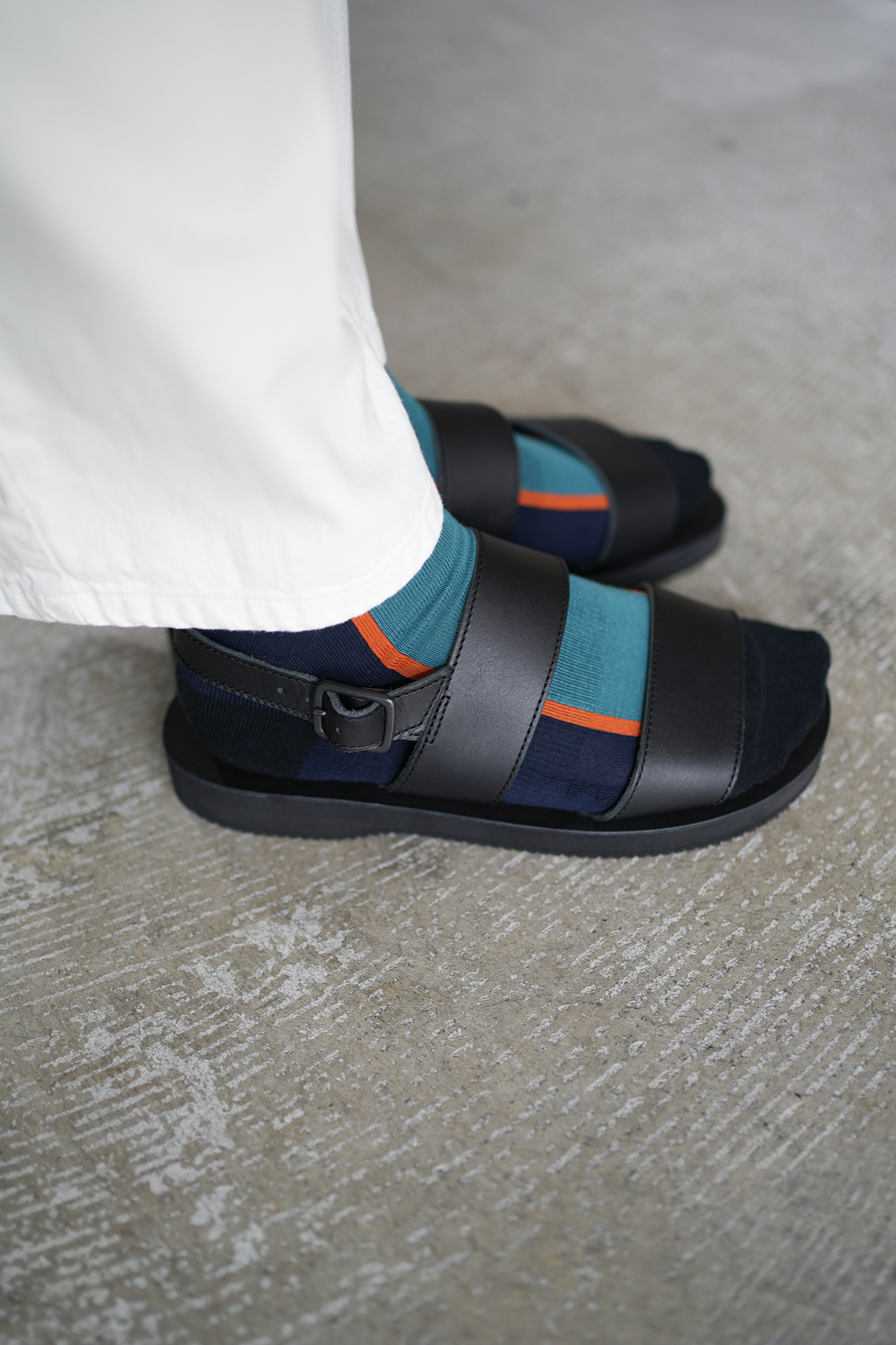 牛革で仕立てたレザーサンダルバックストラップモデル。足をホールドし歩きやすく、ソールは厚みのあるヴィムラム社製ラバーソールで軽量かつ履き心地抜群のレザーサンダル。素足スタイルのみならず、色・デザインの良いソックスと合わせてスタイリングいただける指周りのデザインがオススメのレザーサンダルです。
