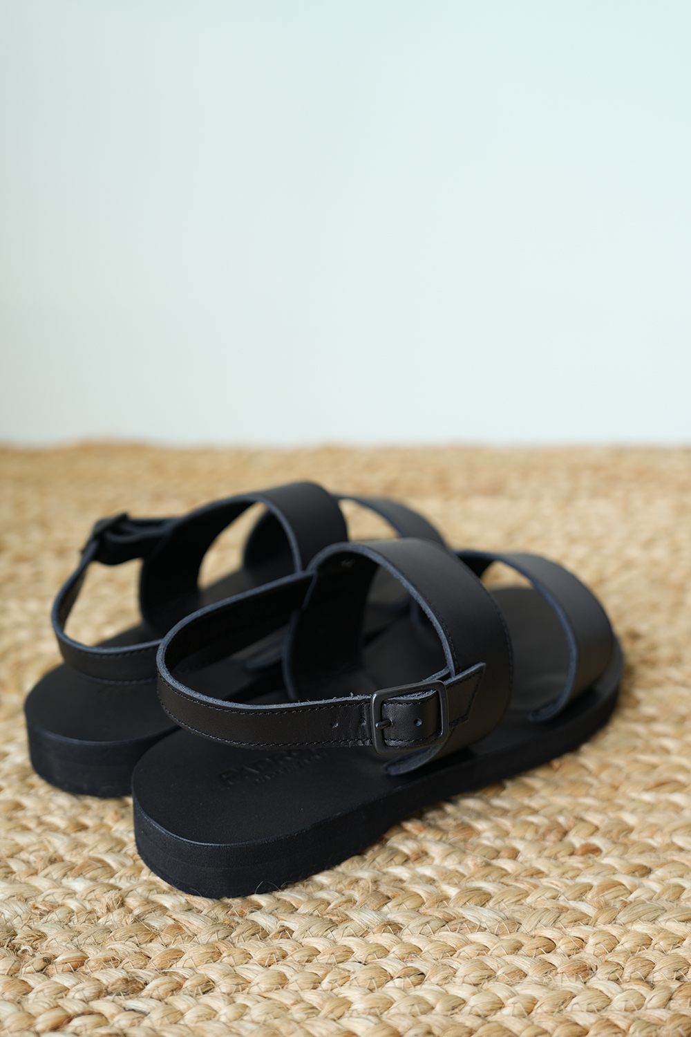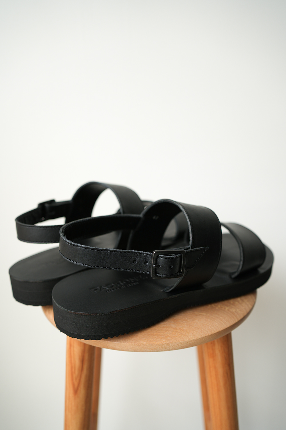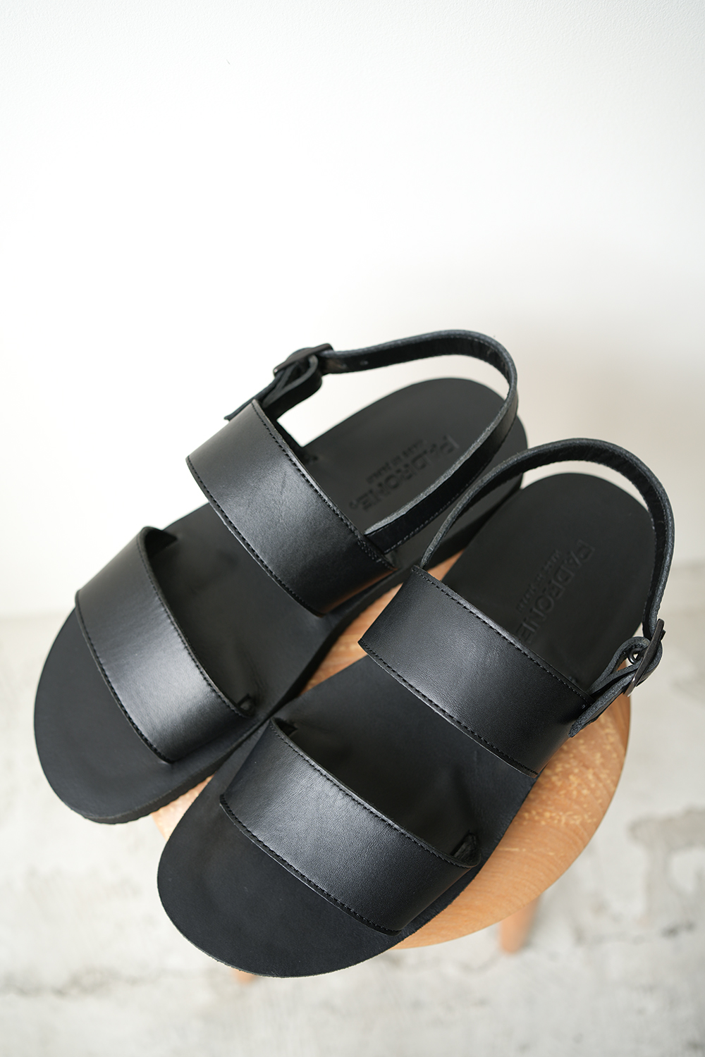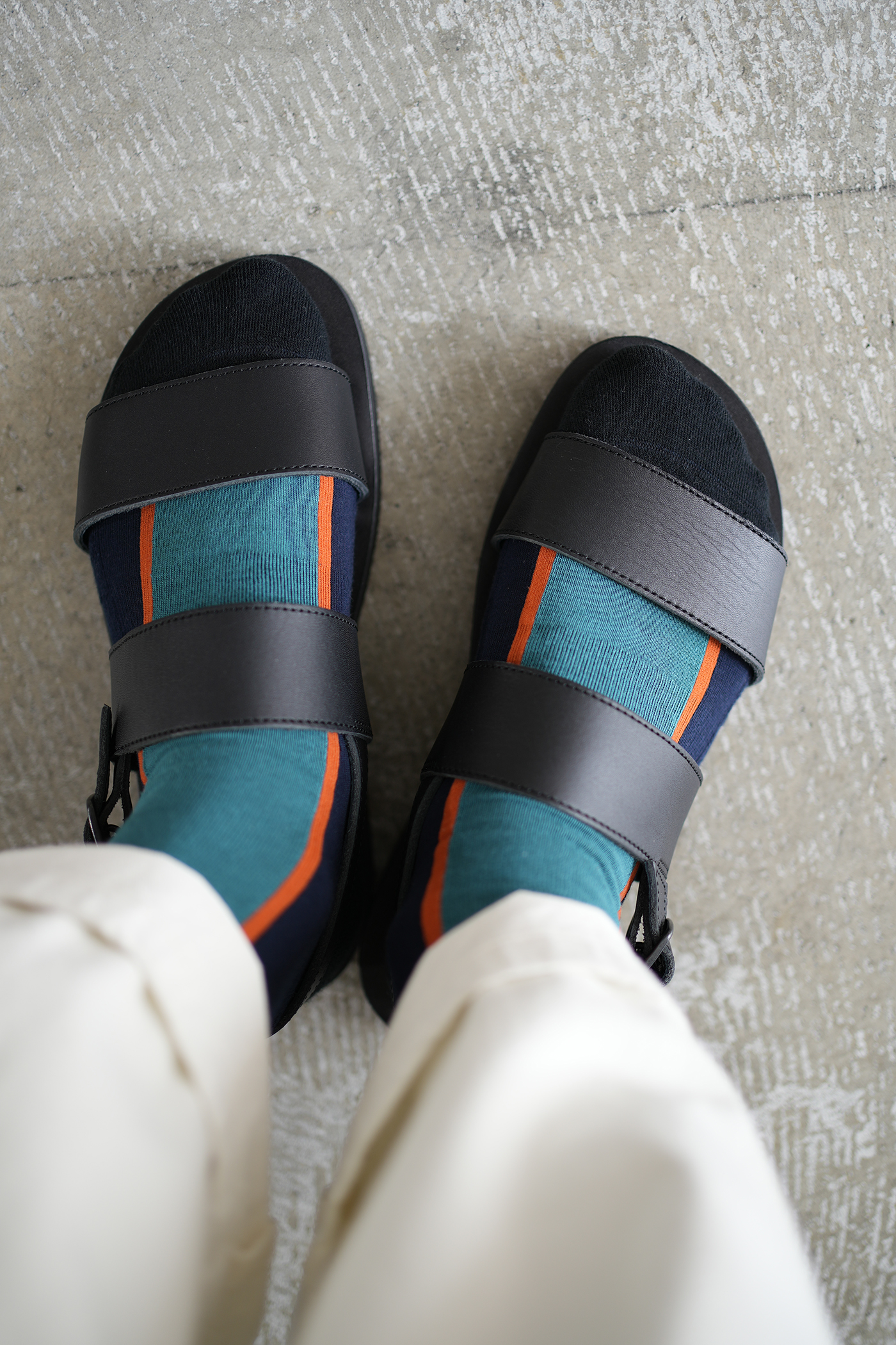 牛革で仕立てたレザーサンダルバックストラップモデル。足をホールドし歩きやすく、ソールは厚みのあるヴィムラム社製ラバーソールで軽量かつ履き心地抜群のレザーサンダル。素足スタイルのみならず、色・デザインの良いソックスと合わせてスタイリングいただける指周りのデザインがオススメのレザーサンダルです。