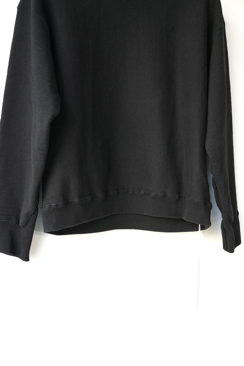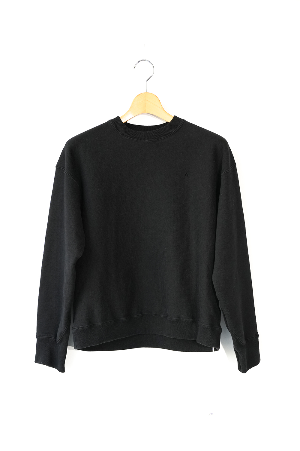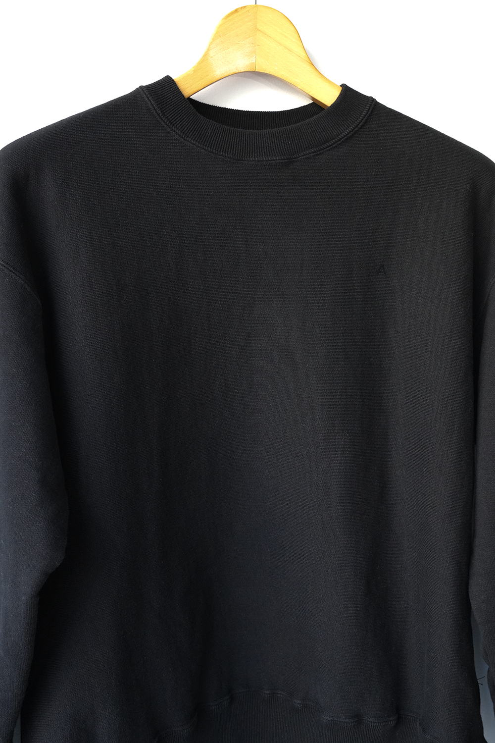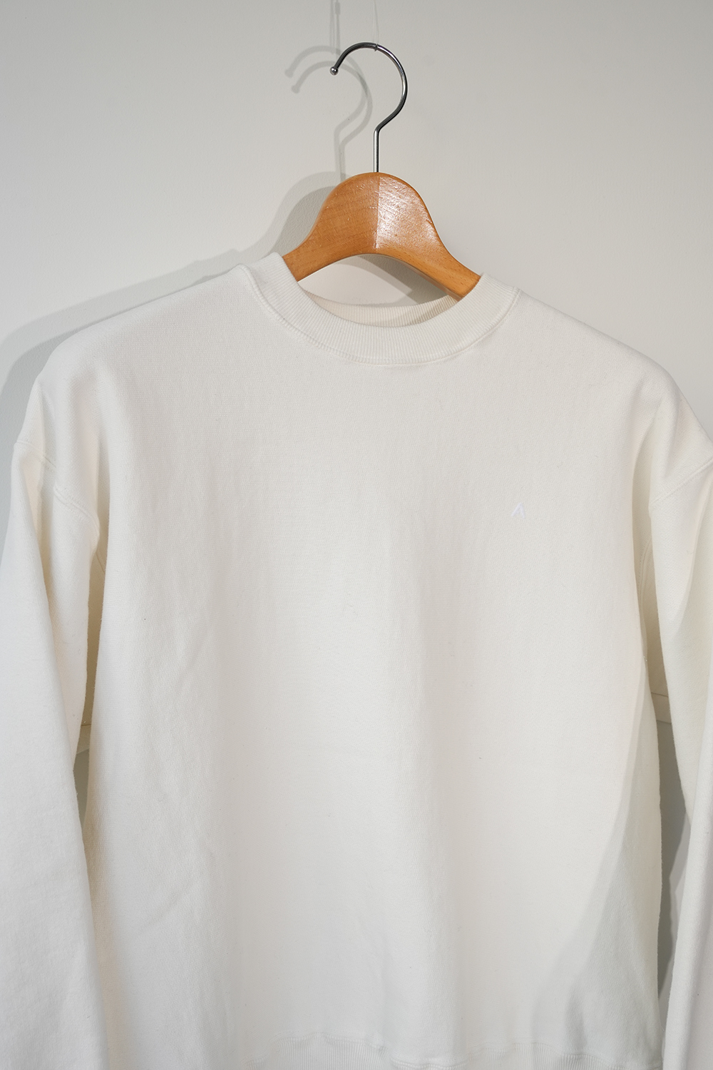 70年代のロサンゼルスの大学の購買部で売られていたカレッジトレーナーのヴィンテージを参考に作ったAラインに広がるトレーナー。特徴はTシャツのような横軸でカジュアルな印象、袖口のトライアングルや胸元の”A”はフーディーを継承しています。和歌山市で太番手の糸を通常の倍、限界まで高密度に編み上げたジャージー素材です。高密度に編み上げることで耐久性は勿論、製品染めをした後に、洗いをかけている為、縮みも起きません。裏毛は表面と裏面、その間を繋ぐ面の3層構造、間に空気を含む為、暖かさも兼ね備えています、MADE IN JAPAN。