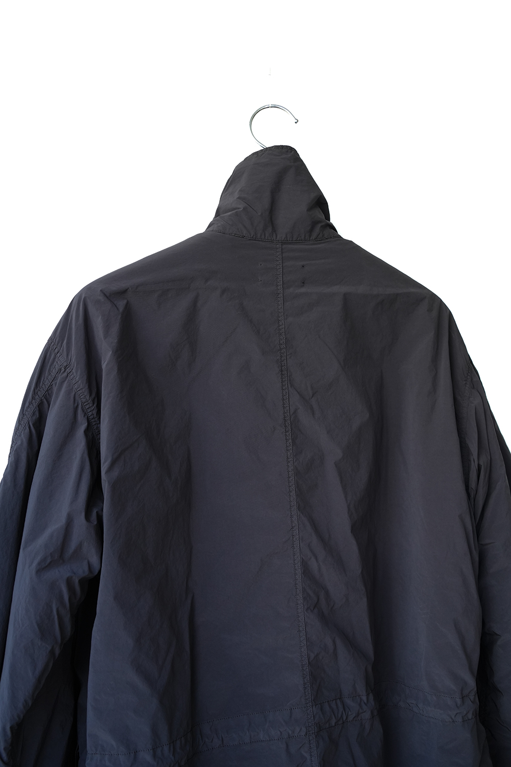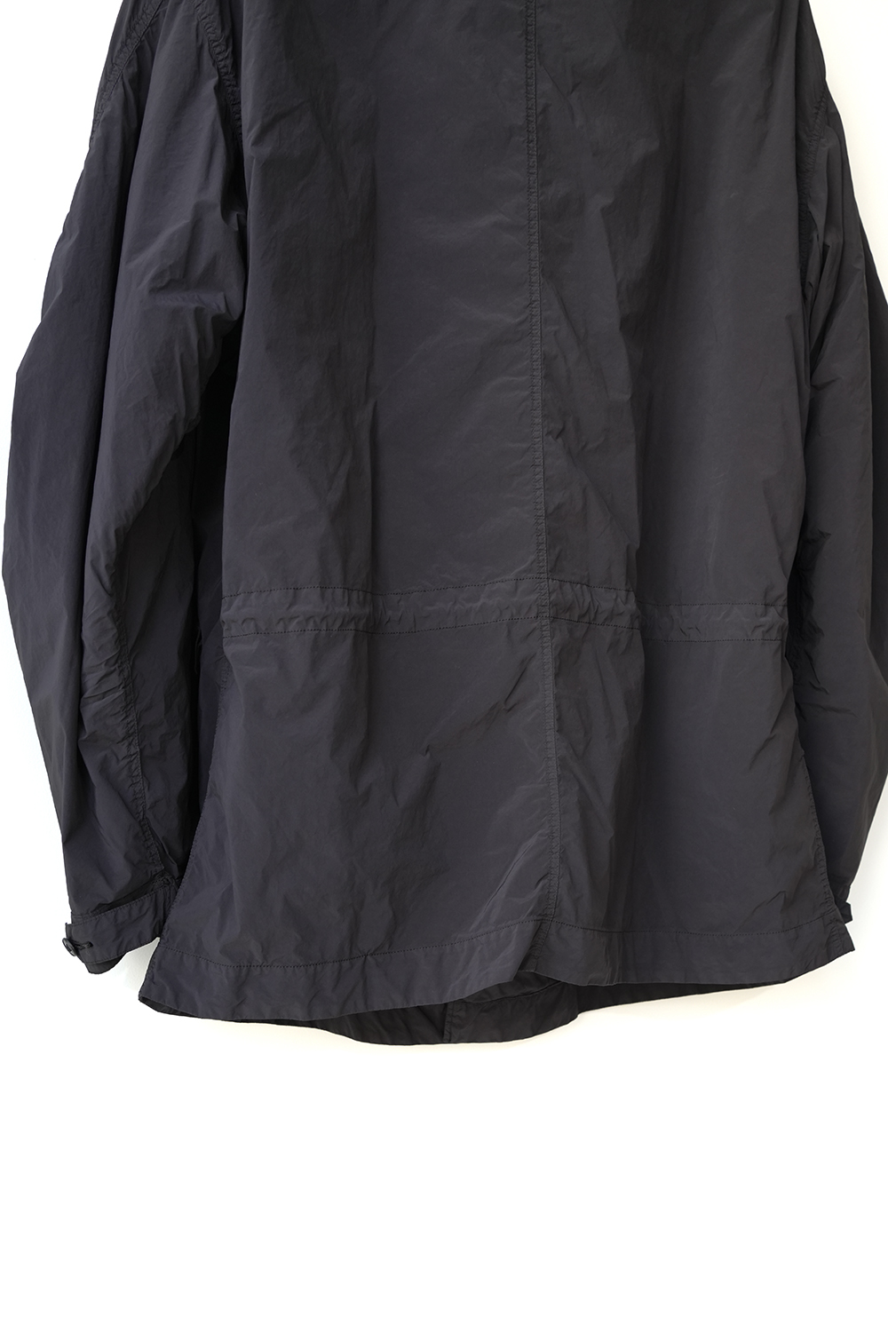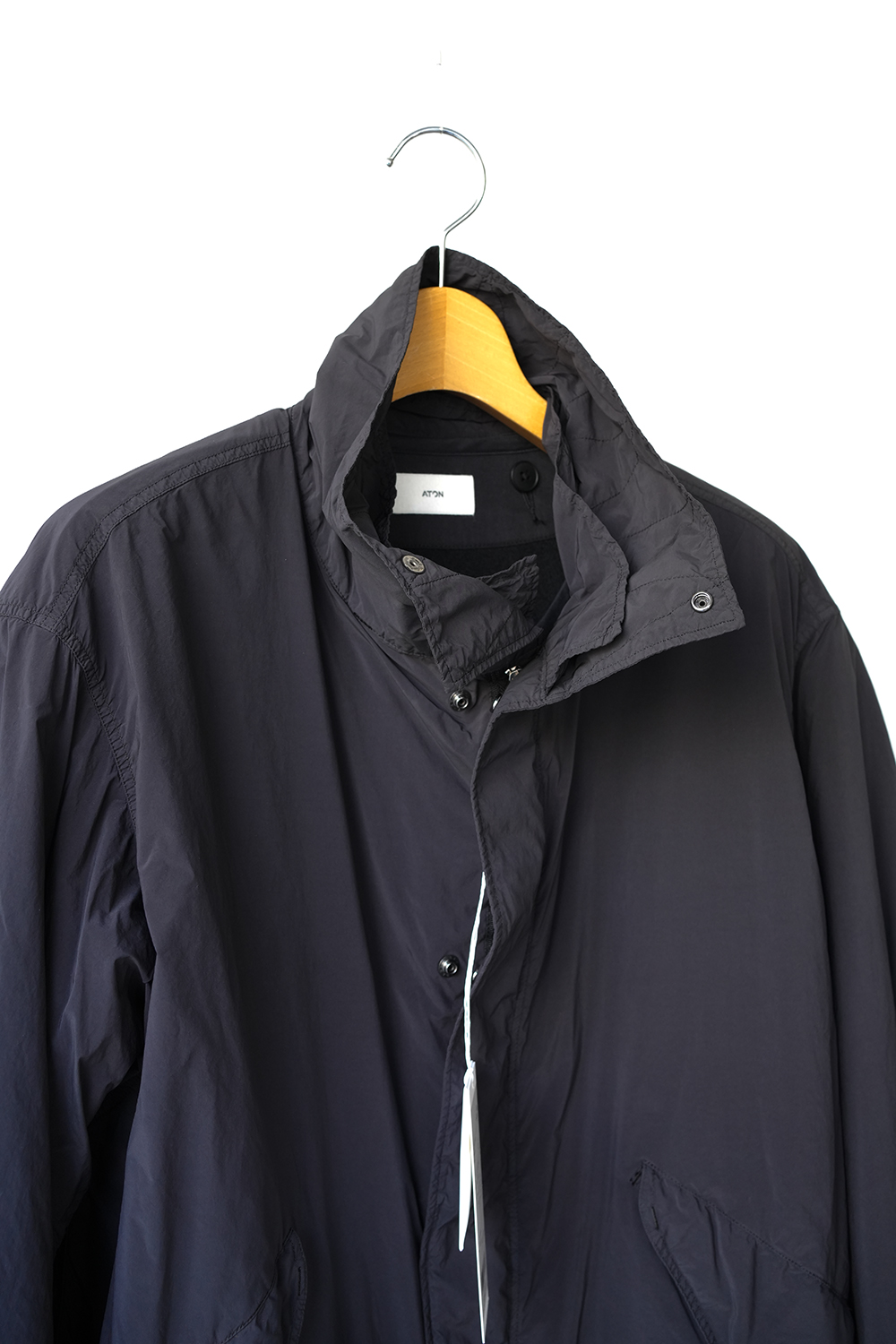 アメリカ軍のM-65モッズコートをベースにしたショートコート。フードを取り、裾を横方向にスパッと切ったようなデザインで、ブルゾンのような丈が新鮮なショートコートです。また、高密度のナイロンの表地、ライナーにはウール混の生地を使用し、真冬でも温かく着ていただけます。シワになりにくく、持ち運びにも便利で、ライナーを取り外すと3シーズン活躍してくれるアウターです。ナイロンとポリエステルの熱収縮率の違いを生かし、環境の変化により表情が変わっていく様を楽しむことのできる、天然繊維のような糸を使用し、石川県能美市にて高密度に織り込むことにより、独特の風合いを表現した素材です。製品染めで仕上げ、撥水加工を施しています。ライナーはしっかりと保温性が伴うので、真冬でも着用することができます。