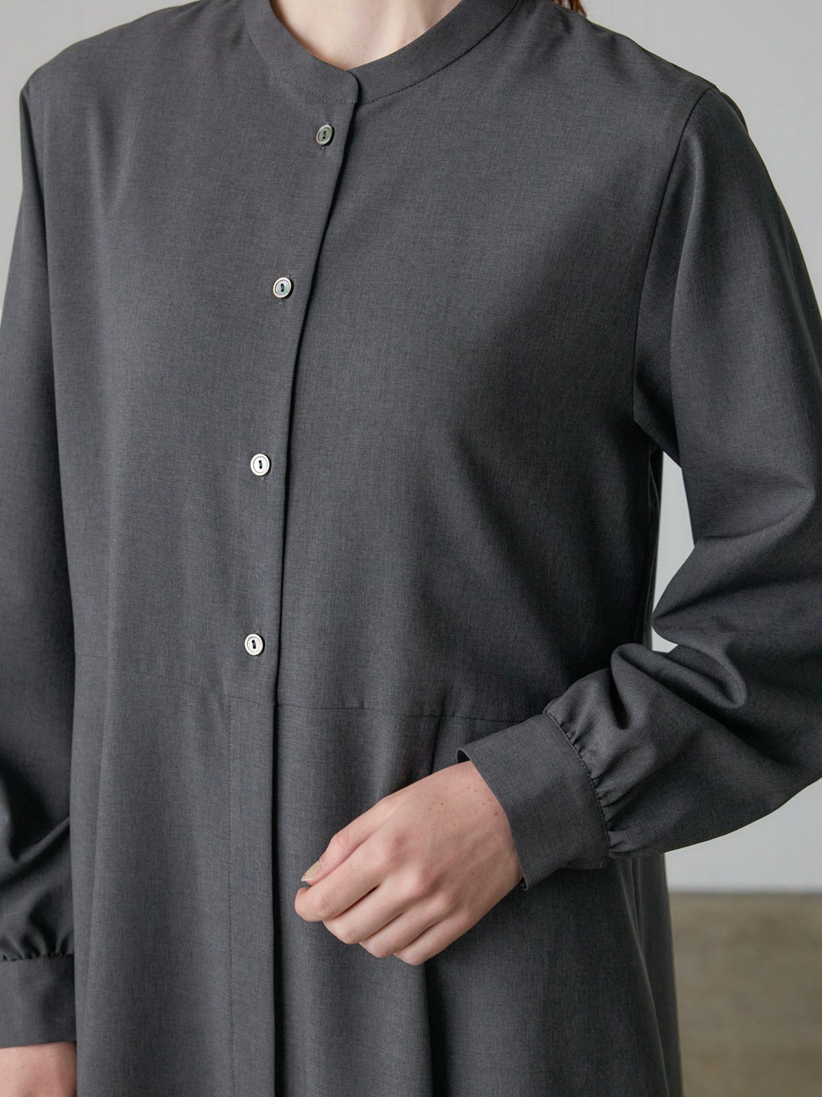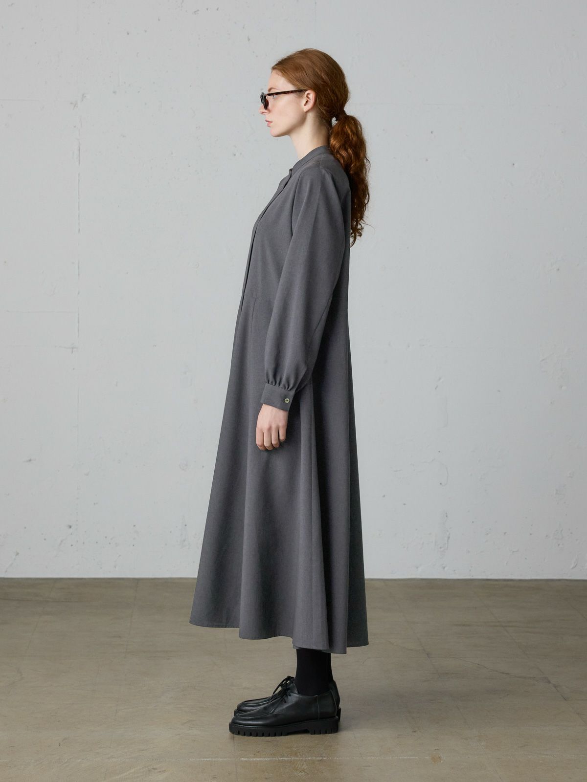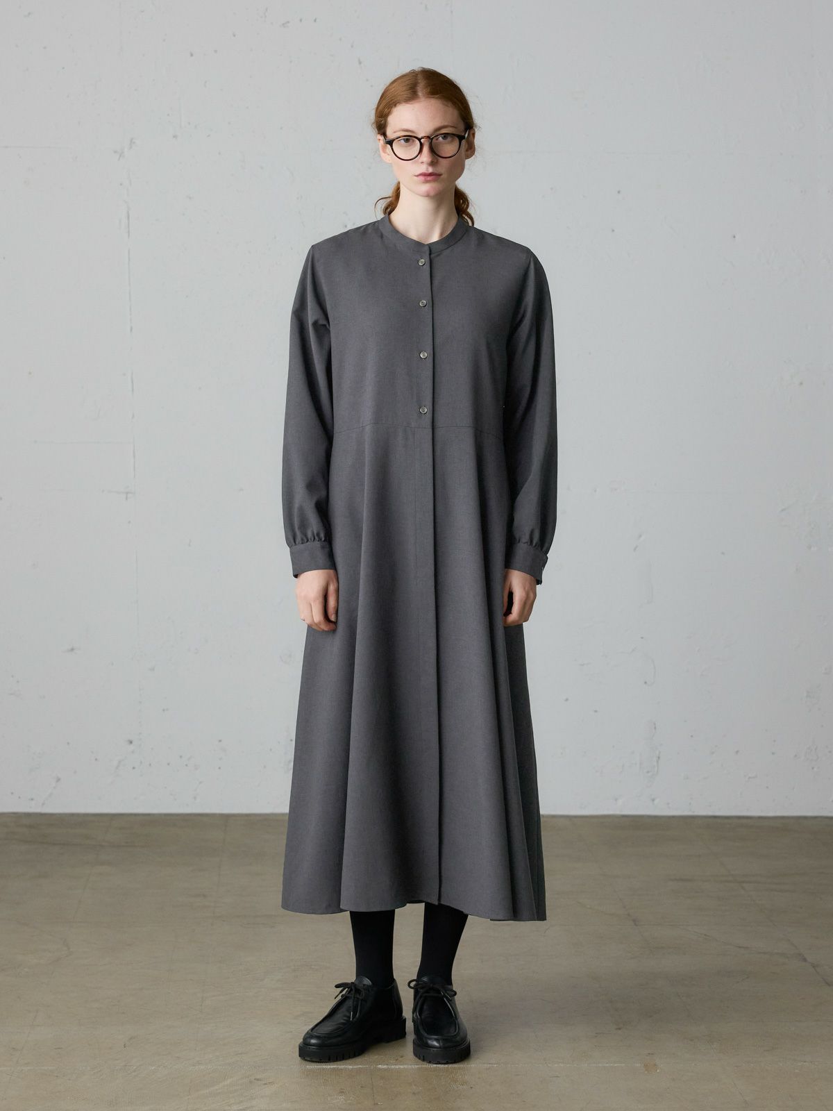 リサイクルポリエステルを100%使用したウエスト切り替えロングワンピース。梳毛ライクで落ち感のある生地が特徴、洗ってもシワになりにくいのがポイント。上見頃は肩周りをコンパクトめに、スカート部分はボリュームをたっぷり使用したバランスのとれたデザインです。落着きがあり上品でクラシカルな雰囲気を提案した1枚。