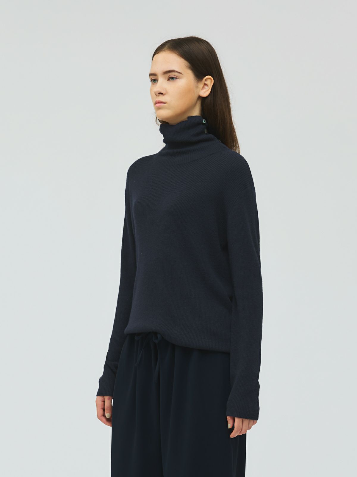 「mizuiro ind」rib high neck P/O with button