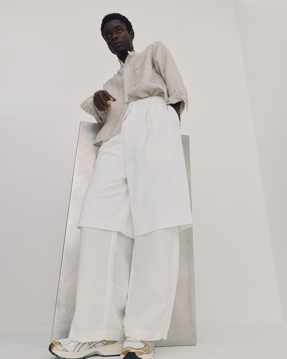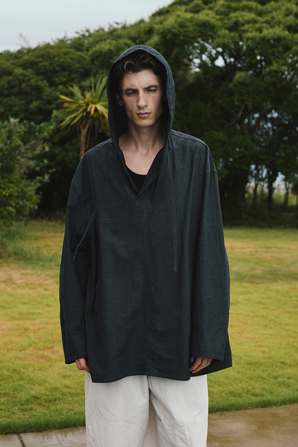 「marka」LINEN RAMIE CHAMBRAY BAND COLLAR SHIRT
