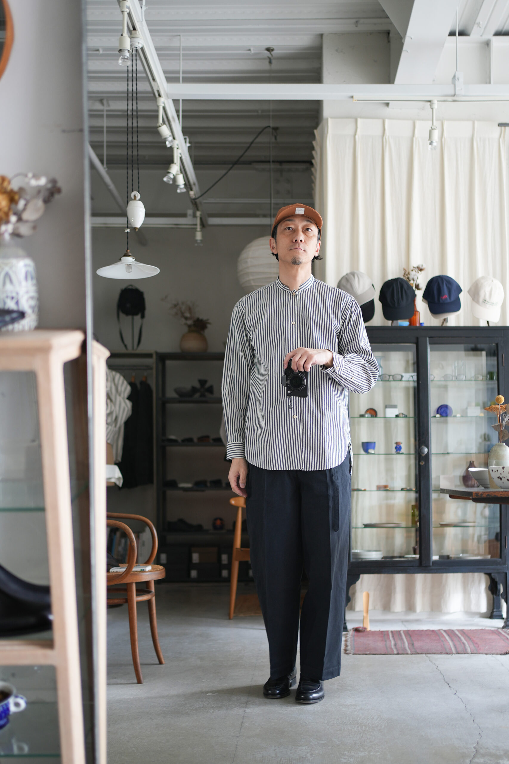 「NO CONTROL AIR」ポリエステルドライダブルウェザーノーカラージャケット &テーパードパンツセットアップ