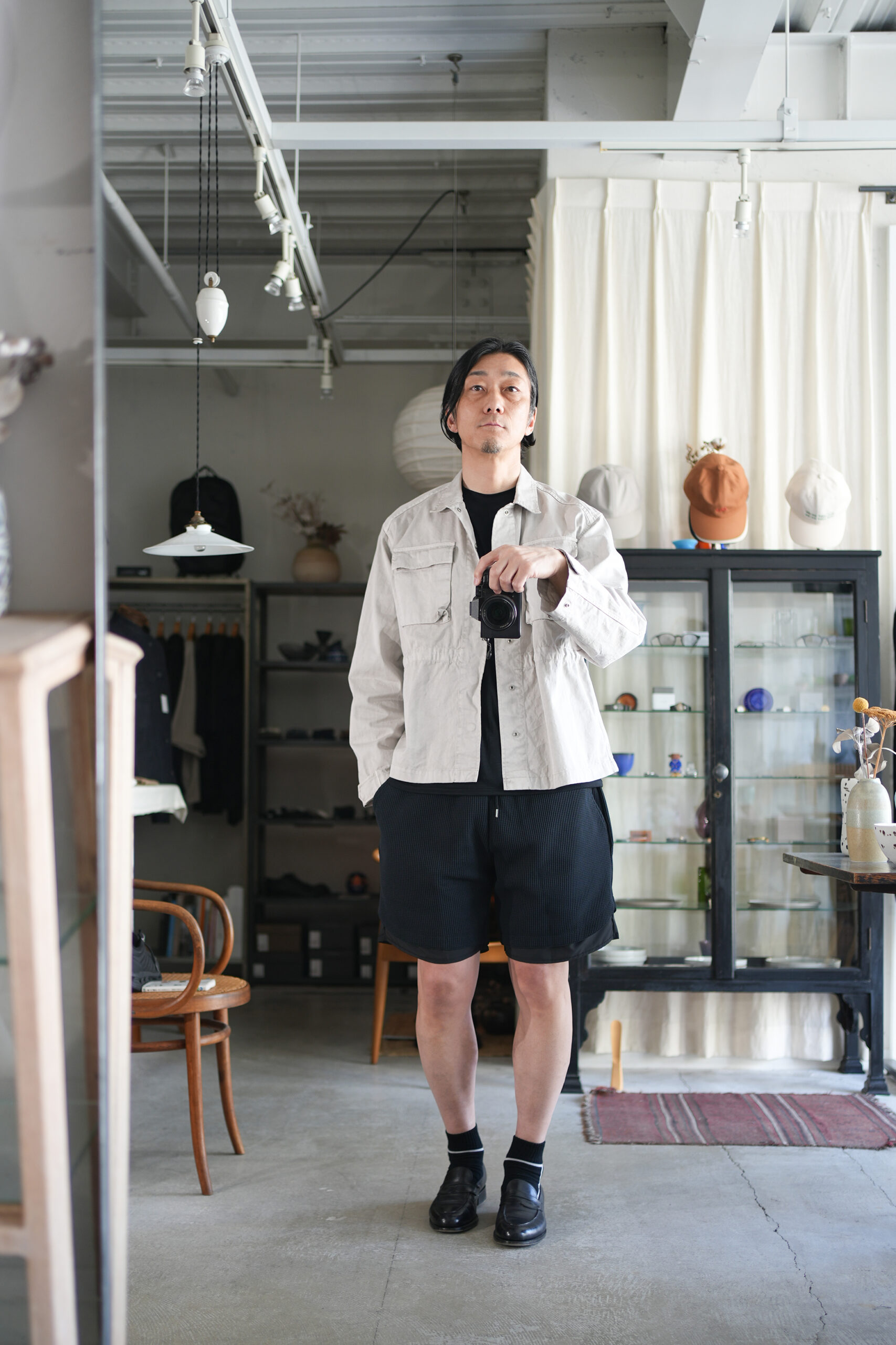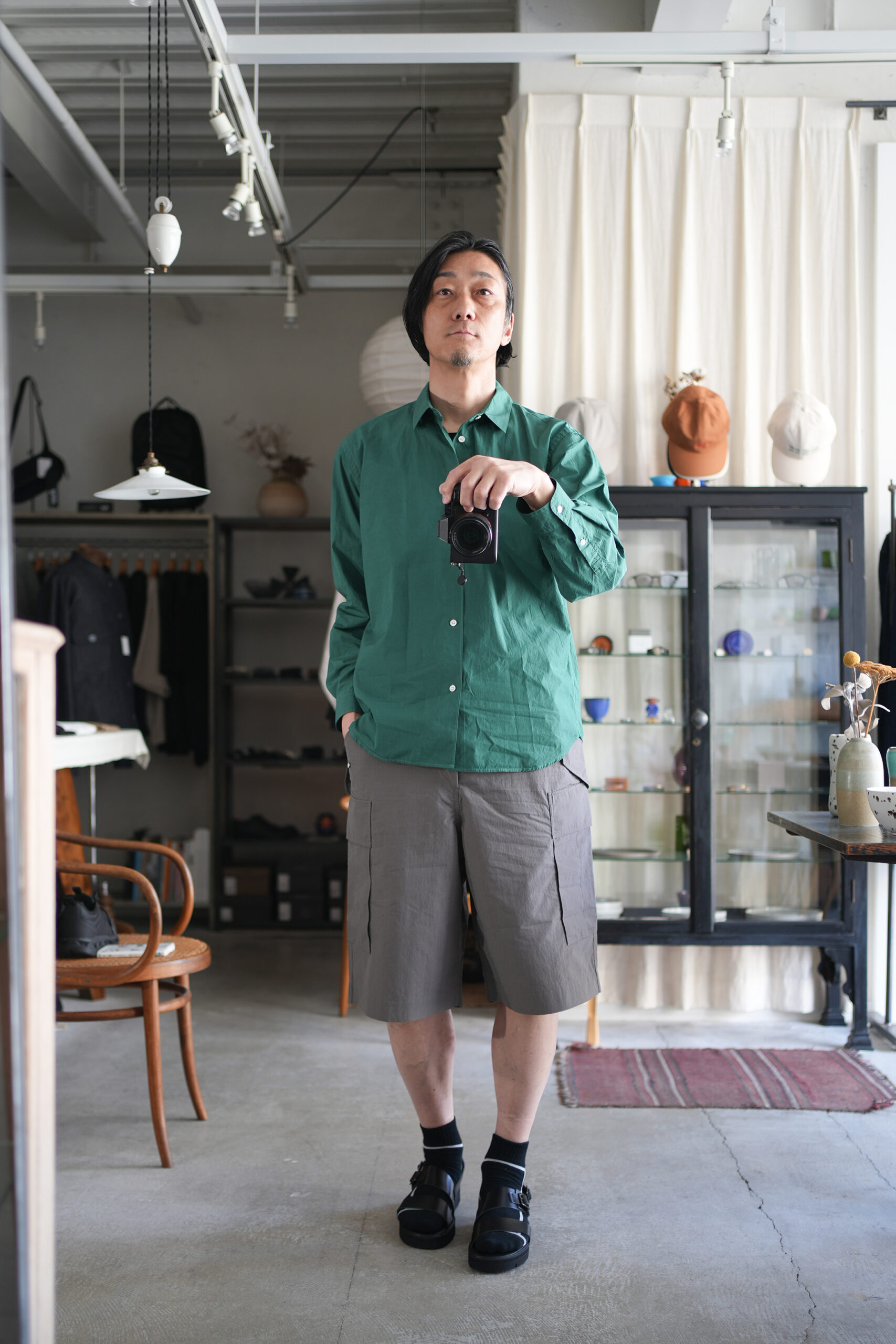 「ATON」SHRINK COTTON LAWN | OVERSIZED SHIRT & 「meanswhile」Ambient C/N Cargo Baggy Shorts