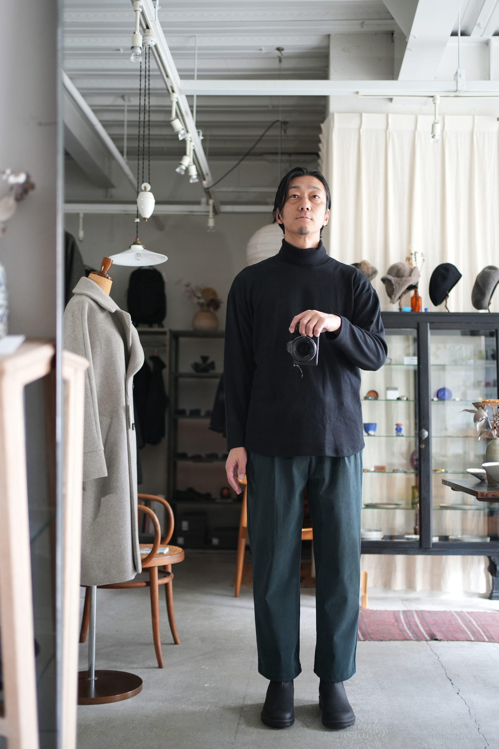 「CURLY」PREMIEREWARM L/S TEE (turtle-neck) & TRICOT CORDUROY MIRROR POCKET PANTS